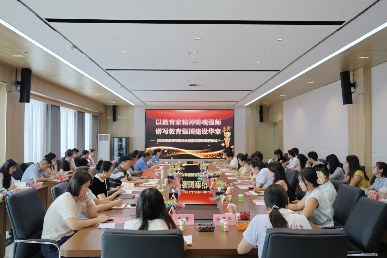 尊师重教谱华章,文创新风润杏坛。9月10日下午,我校举行第41个教师节座谈会暨副高职称聘任仪式。校领导们与教师代表齐聚一堂,共同庆祝教师节,见证副高职称聘任,并围绕“以教育家精神铸魂强师,谱写教育强国建设华章”展开深入交流。