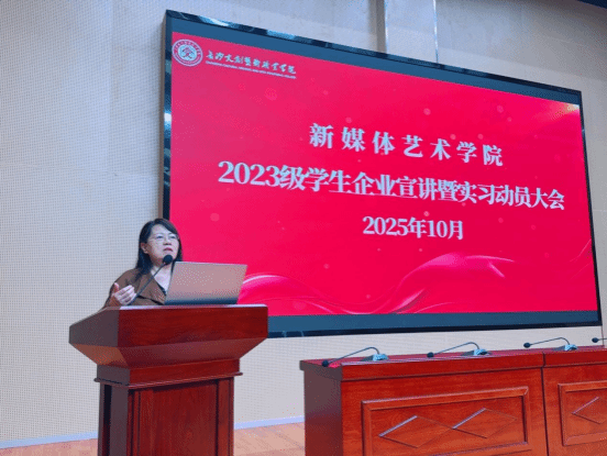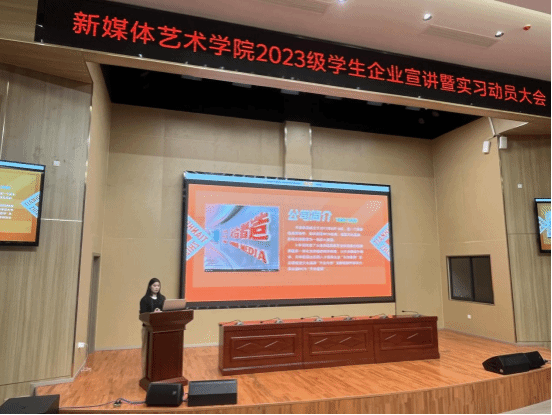 本次企业宣讲与实习动员大会的召开,为学院2023级学生搭建了优质实习对接平台,明确了实习目标与安全要求,进一步凝聚了“以实践促成长”的共识。新媒体艺术学院将持续跟进学生实习动态,做好实习指导与服务保障,助力学生在实践中提升能力、积累经验,为未来职业发展筑牢根基,输送高素质应用型人才。
