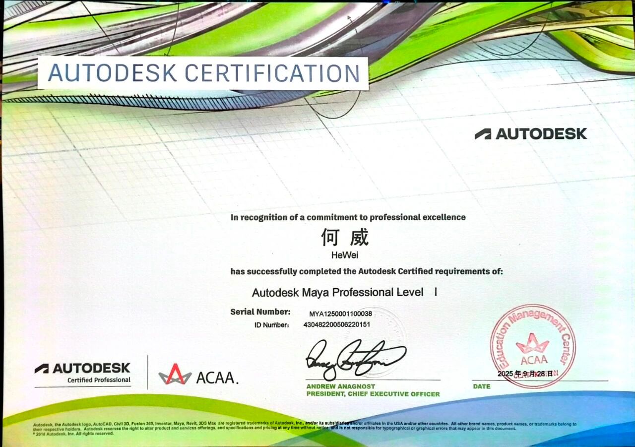 此次学生们获得的Maya产品专员认证,是Autodesk在三维动画领域的专业认证。Maya软件是全球顶级的三维动画软件,在专业影视广告、角色动画、电影特技等领域有着广泛应用。获得此认证表明持有人在使用Maya软件方面具备了较强的专业技能和知识,能够娴熟灵活地运用该软件高质量、高效率地完成创作任务。