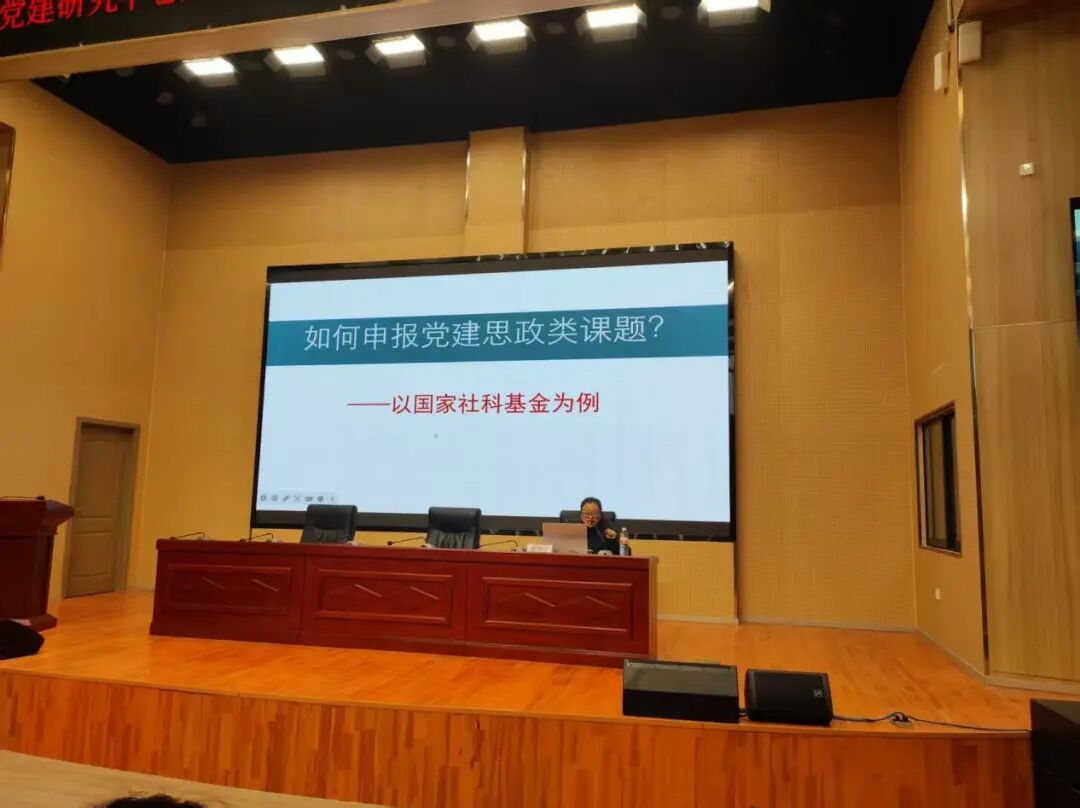 讲座中,罗教授针对申报难点,以国家社科基金申报为案例,从选题凝练、团队成员要求、标书撰写、注意事项四方面展开讲解。她表示,党建思政类课题选题需立足实践、紧扣时代,从日常党建与思政教育中挖掘“真问题”,实现“教学问题科研化、科研成果教学化”。她还强调,团队应学科互补、方向协同;标书撰写需逻辑严密、论据充分、表述规范、凸显创新。此外,她还就申报时间把控、材料校对等注意事项细致提醒,指导教师将党建实践经验转化为科研成果。