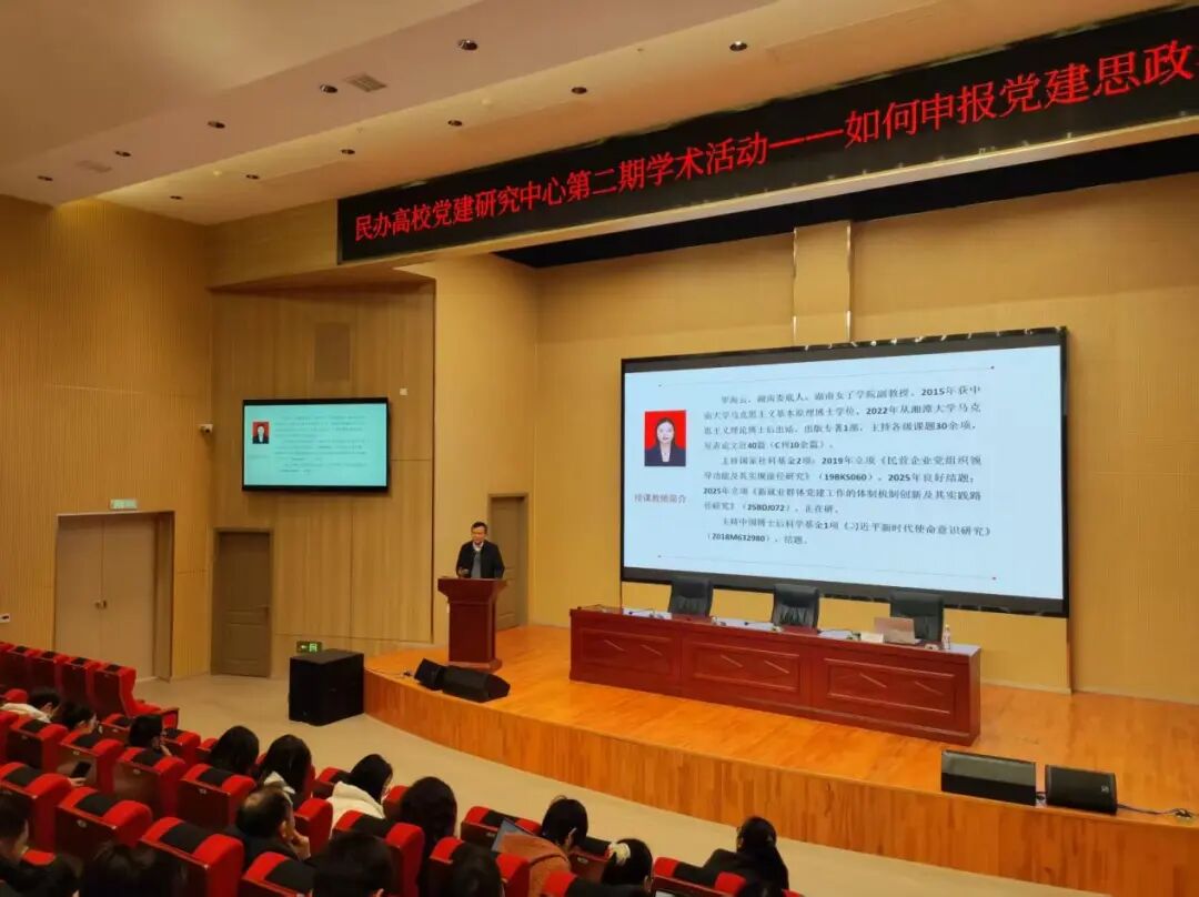 为深入推进党建与科研深度融合,切实提升学院教师党建思政类课题申报质量与科研攻关能力,近日,我校特邀湖南女子学院罗海云教授开展“如何申报党建思政类课题”专题讲座。会议由学校党委书记、民办高校党建研究中心主任朱元双主持,30多名中心研究人员参加。