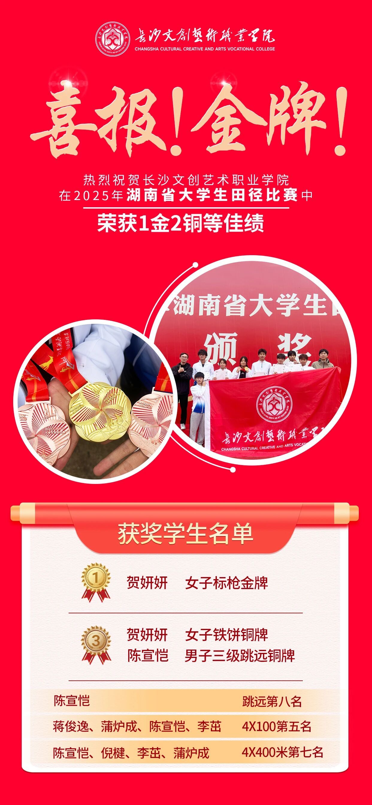 青春无畏,逐梦不止!祝贺校田径队的运动健儿们,愿你们在未来的赛场上继续乘风破浪、再创佳绩,书写更多属于长沙文创艺术职业学院的荣耀篇章!让我们共同为他们喝彩!